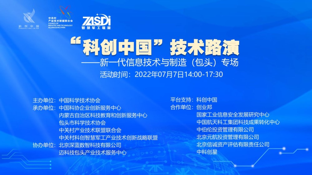 “科创中国”技术路演——新一代信息技术与制造(包头)专场,由中国科学技术协会主办,中国科协企业创新服务中心、内蒙古自治区科技教育和创新服务中心、包头市科学技术协会、中关村产业技术联盟联合会、中关村科创智慧军工产业技术创新战略联盟共同承办。本期技术路演活动围绕新一代信息技术、先进装备制造相关领域,聚焦服务“科创中国”试点城市(园区)重点发展产业,优选7家创新项目,采用线上直播的方式进行展示,共同探讨先进装备制造、数字化建设、工业控制、信息安全等领域青年科学家技术创新及应用成果,并邀请业界相关技术专家、投资人、企业家做线上点评、交流、对接。